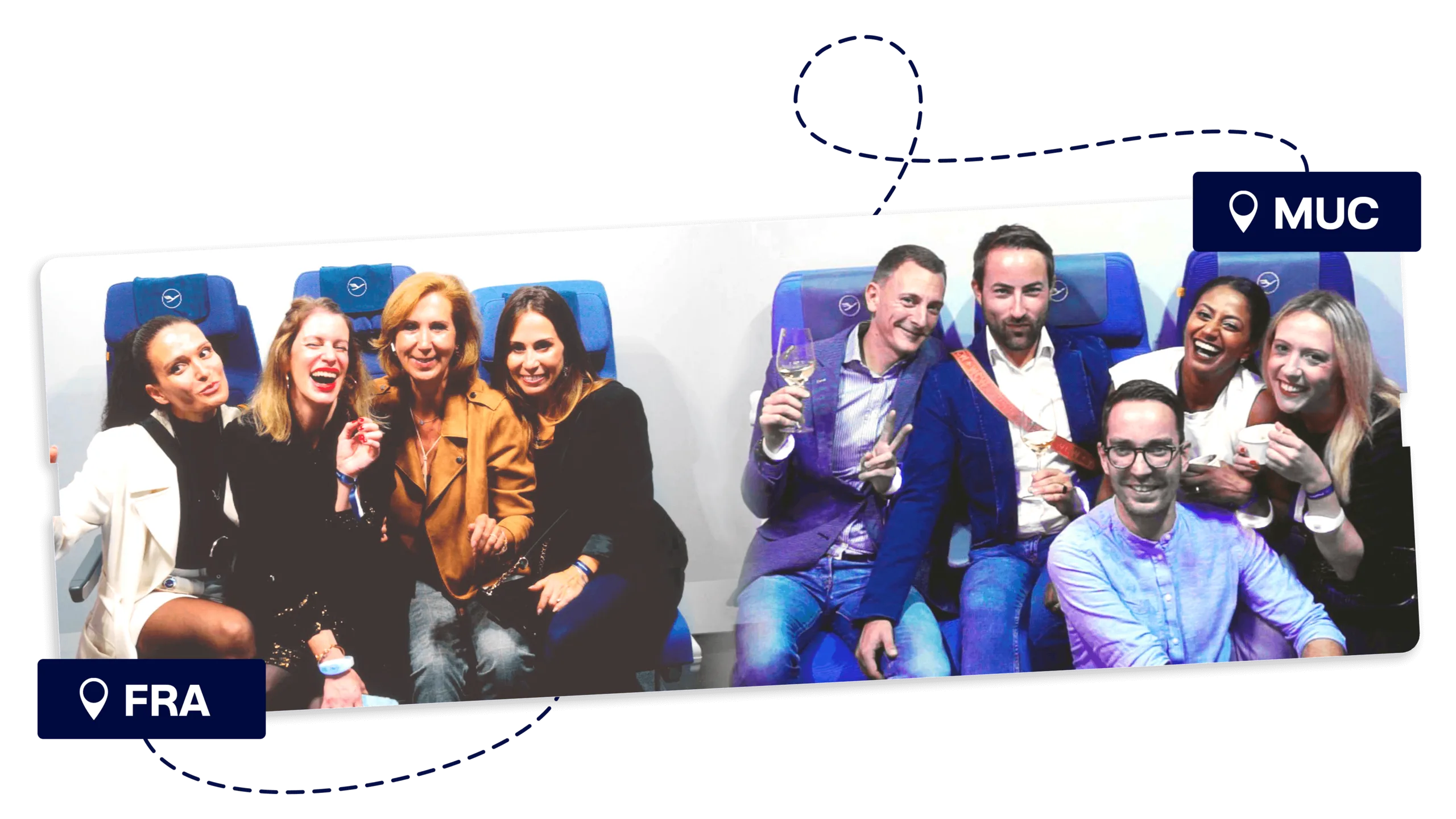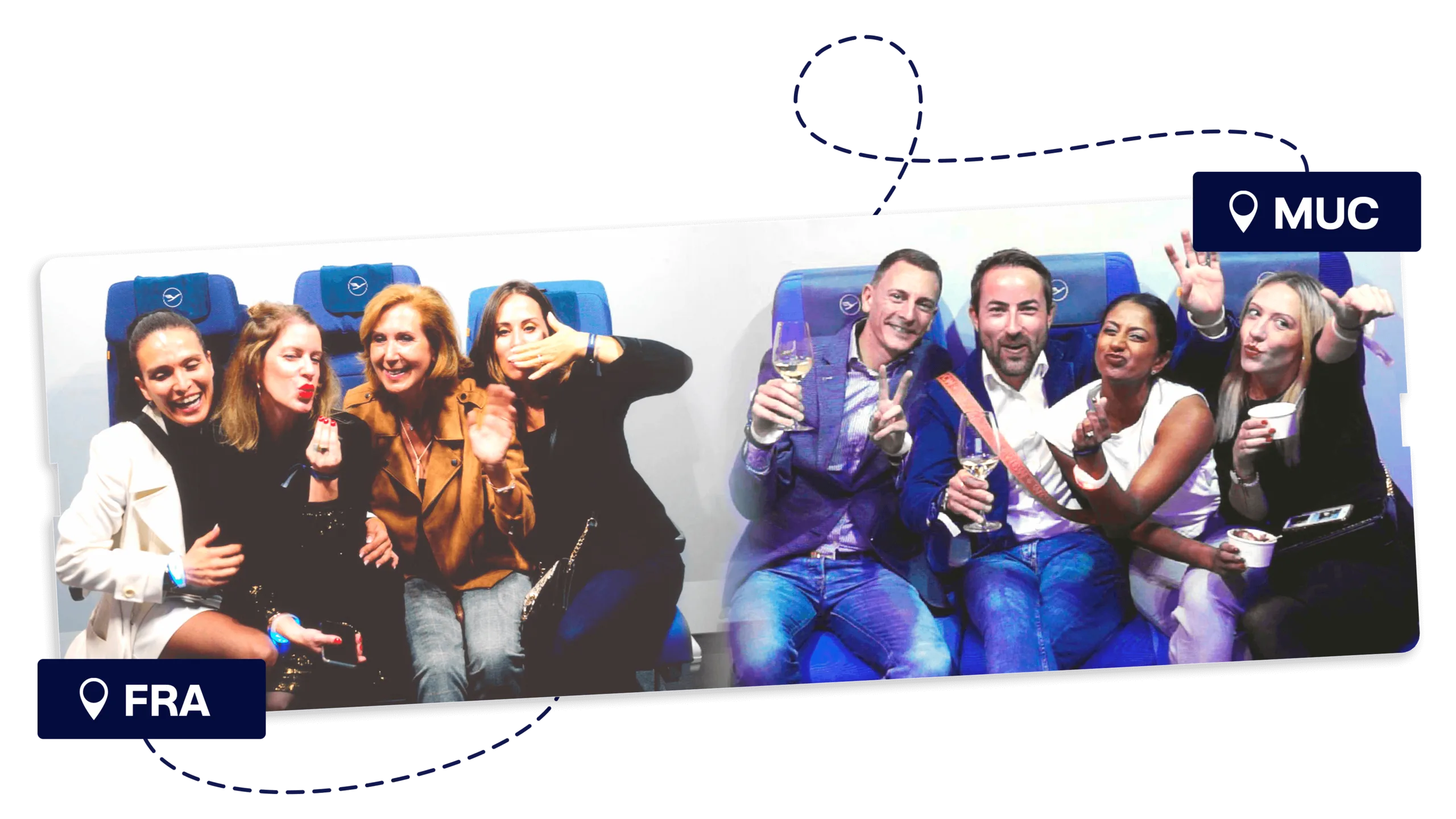 In beiden Hangars wurde jeweils eine Sitzreihe der neuen Boeing aufgestellt und über einen Bildschirm konnte man die Gäste des anderen Standorts sehen. Wir haben die beiden Livestreams nahtlos zusammengeführt, sodass die Gäste miteinander interagieren und ein gemeinsames Foto schießen konnten.