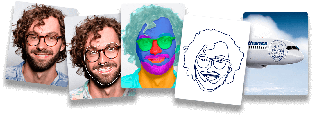 Eine Kombination aus verschiedenen Machine-Learning Algorithmen und ein bisschen Magie in Processing hat aus den Fotos ein abstraktes Kunstwerk im Lineart Stil generiert.