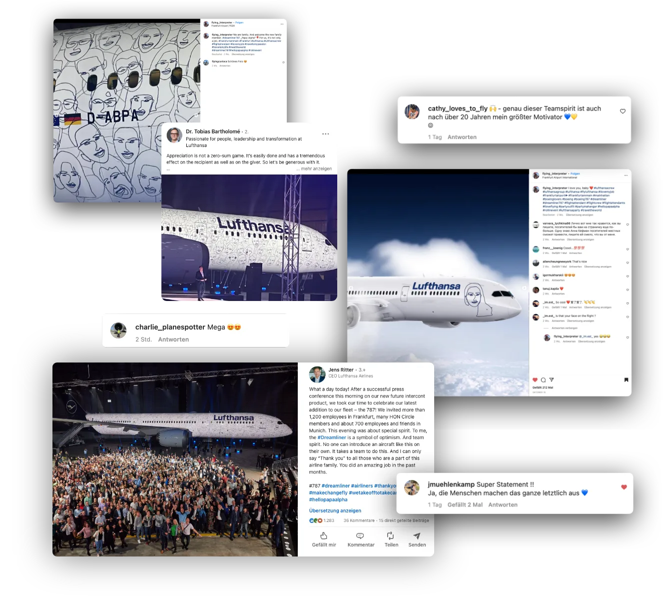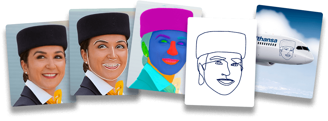 Das Highlight der Show: Bei der offiziellen Vorstellung des Flugzeugs haben wir die entstandenen Portraits der Gäste aus München und Frankfurt direkt auf das Flugzeug projiziert. Das war für alle, inklusive uns, einfach ein krasses Erlebnis.