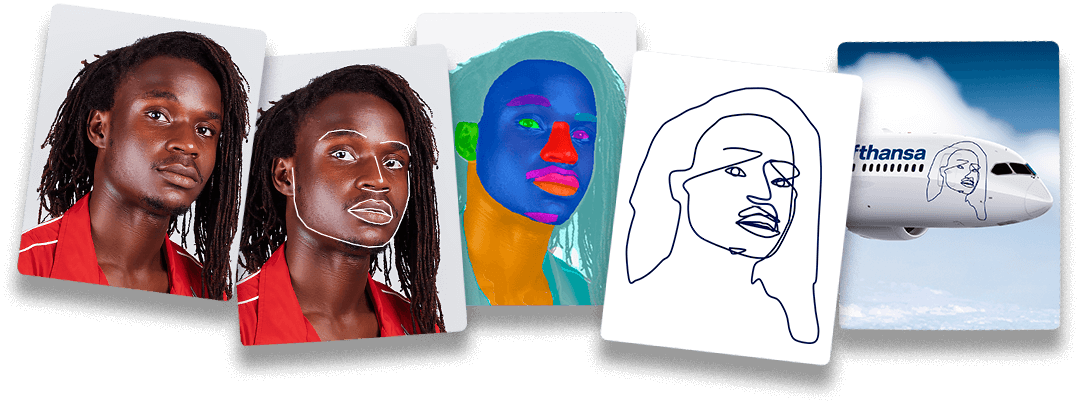 Ergänzend werden die Umrisse von Frisuren, Bärten oder Kopfbedeckungen ermittelt.